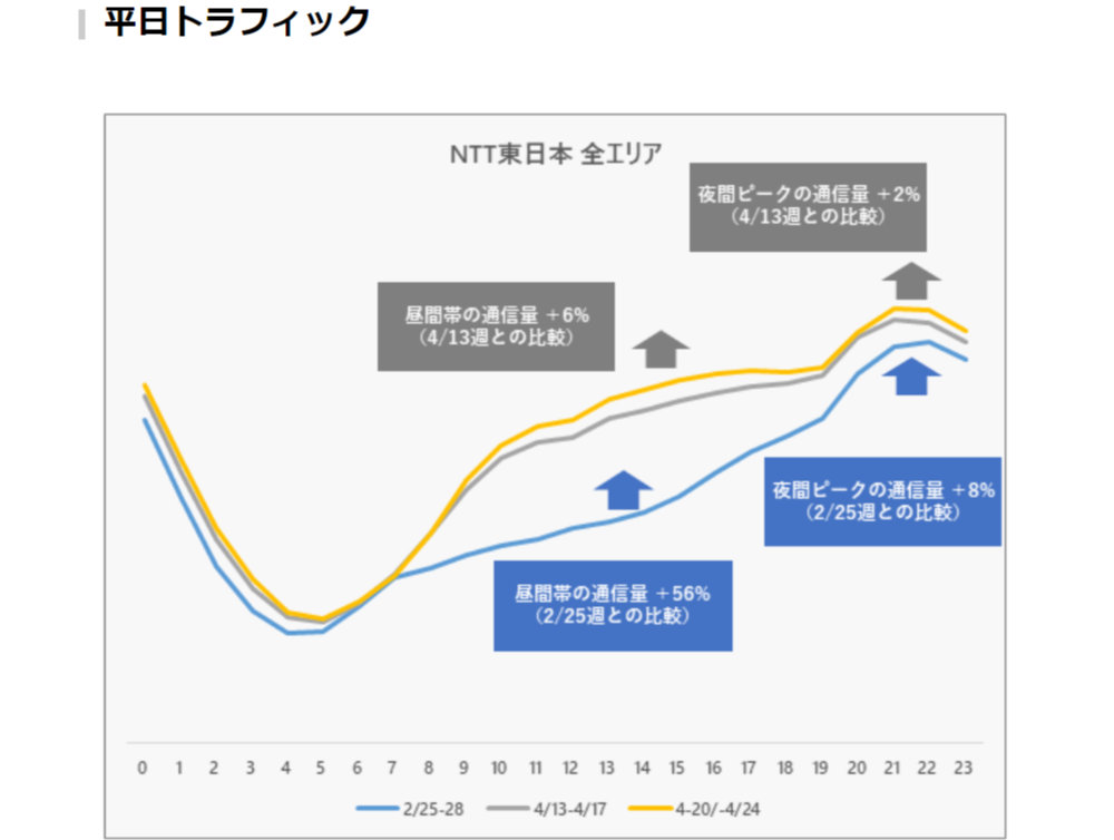 新型コロナウイルス感染症の蔓延による緊急事態宣言の発令以降、インターネットのトラフィックは、影響が出る前と比較するとNTT東日本によると56%も増加をしていました。